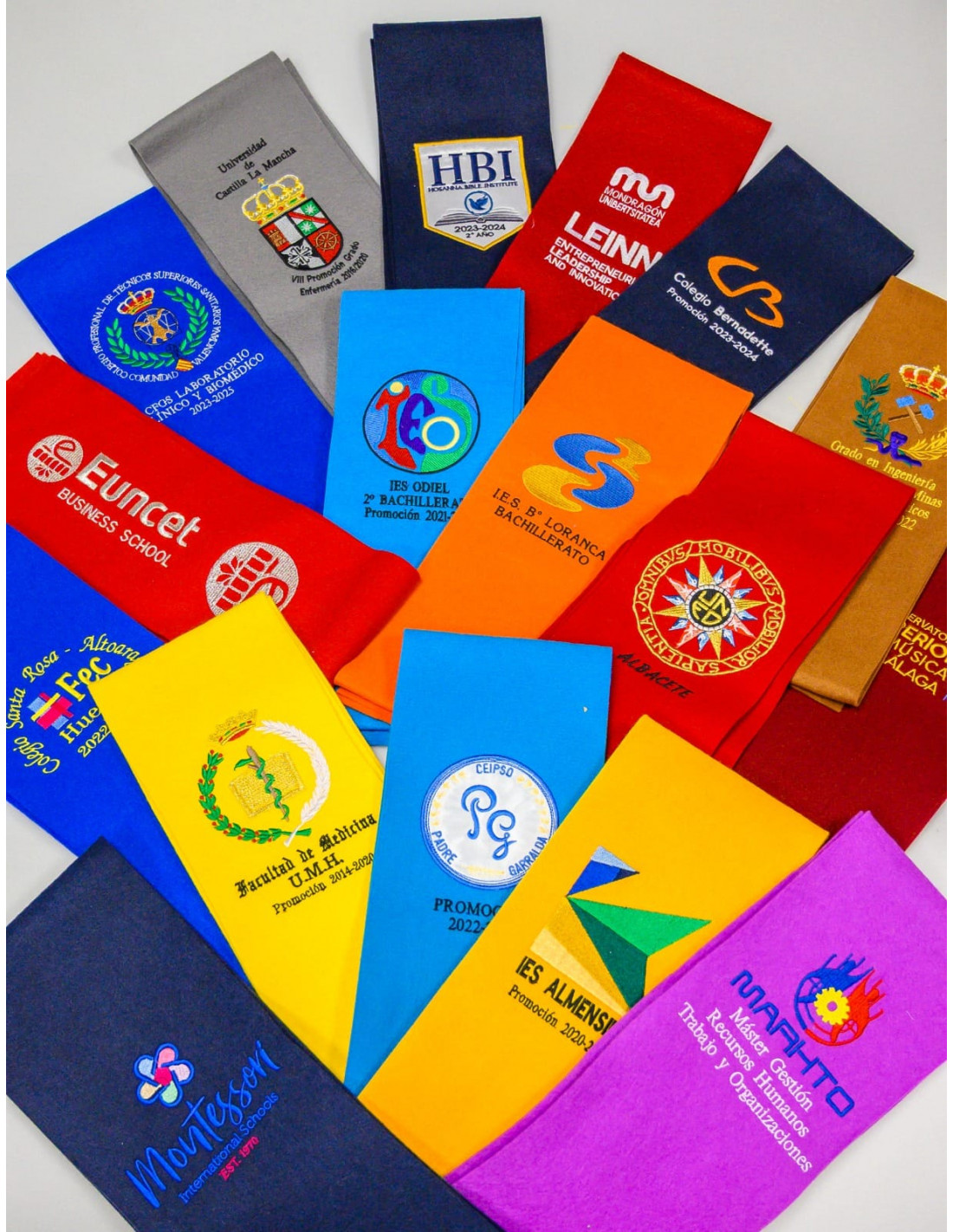 🎓 En las fotos puedes ver algunos ejemplos. Si no encuentras tu color, consúltanos: ¡tenemos muchísimas opciones!